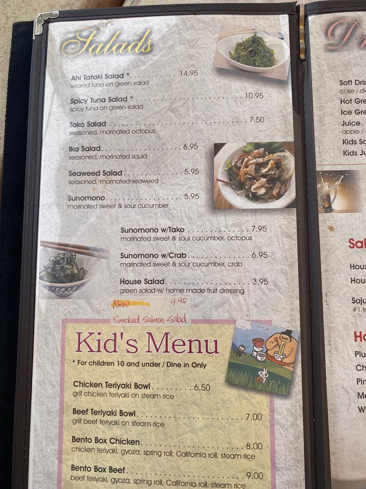 ahi tuna, salmon w/sesame oil seaweed salad, scallion