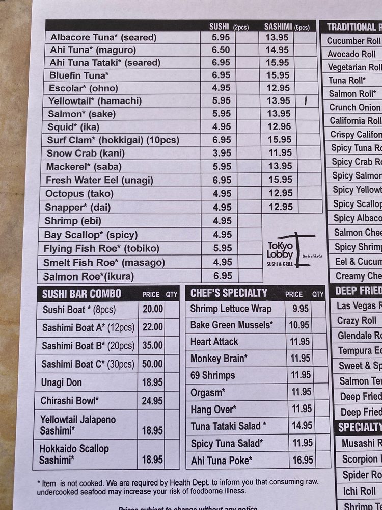 Tokyo Lobby Sushi and Grill is a vibrant spot on Bell Road offering a wide array of sushi options and grilled dishes. With a diverse menu that includes vegan and vegetarian choices, this casual dining spot is perfect for groups, families, or a solo lunch or dinner. The crispy Calamari Tempura, flavorful Ahi Tuna Poke Salad, and mouthwatering Orgasm roll are just a few standouts on their menu. The staff is friendly and attentive, ensuring a pleasant dining experience. The cozy atmosphere and outdoor seating make it a great choice for a relaxed meal. Don't miss out on their happy hour specials and the opportunity to try their bento boxes. Tokyo Lobby Sushi and Grill is a local favorite for a reason - delicious food, welcoming ambiance, and top-notch service.